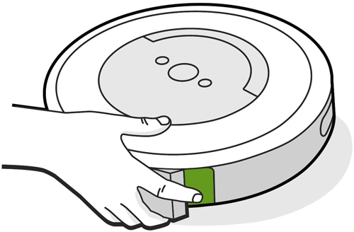 Press the bin release button on the back of the robot to remove the bin. The bin release tab has a