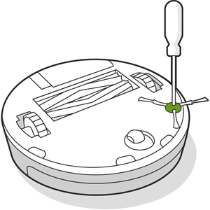 Desserrez la vis de la brosse de balayage des bords avec un tournevis à tête plate ou une pièce de monnaie et retirez la brosse de balayage des bords.
